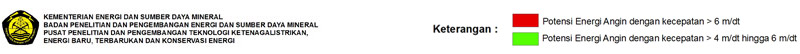 Indonesia memiliki potensi energi angin yang cukup besar di beberapa wilayah. Pemanfaatan energi terbarukan ini dapat dilakukan melalui konversi energi mekanik yang dihasilkan oleh kincir angin menjadi energi listrik. Agar optimal dan sesuai dengan perkiraan teknis, peta di bawah ini memberikan gambaran mengenai potensi energi angin di Indonesia. Peta bersumber dari P3TKEBTKE Litbang Kementerian ESDM, 2014.