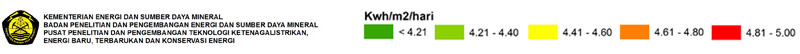 Indonesia yang berada dalam wilayah khatulistiwa mempunyai potensi energi surya yang cukup besar sepanjang tahunnya. Pemanfaatan energi terbarukan ini dapat dilakukan secara langsung dengan konversi radiasi sinar matahari melalui panel surya menjadi energi listrik. Agar optimal dan sesuai dengan perkiraan teknis, peta di bawah ini memberikan gambaran mengenai potensi radiasi matahari di Indonesia. Peta bersumber dari P3TKEBTKE Litbang Kementerian ESDM, 2014.